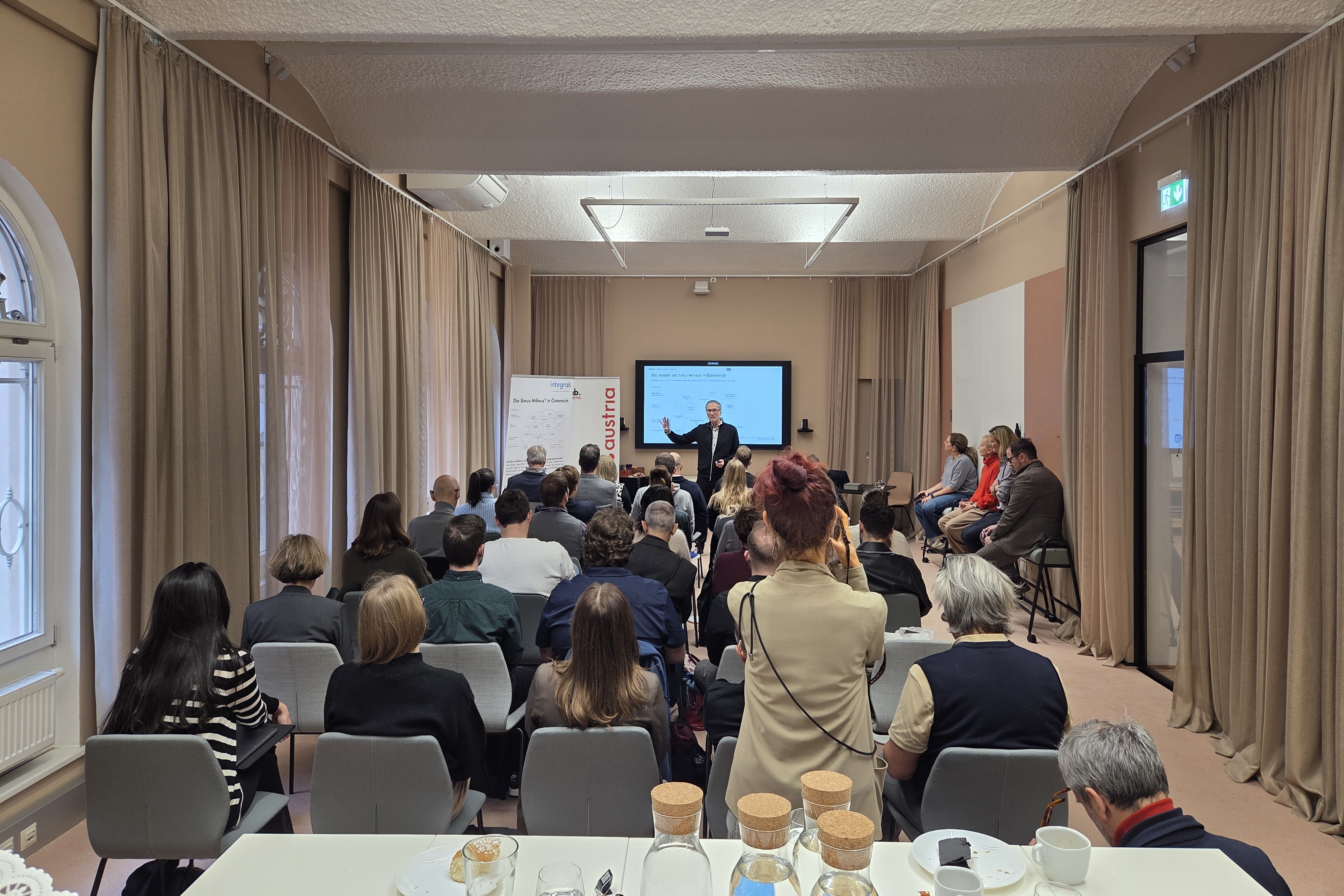 Beim iab Business Breakfast präsentierte Bertram Barth erstmals die Ergebnisse der neuen Studie über Medienglaubwürdigkeit und Fake News. Im Anschluss diskutierten unter der Moderation von Armin Rogl Politik, Medien, Wissenschaft und Technologie, wie Vertrauen im digitalen Zeitalter gesichert und Desinformation aktiv begegnet werden kann: